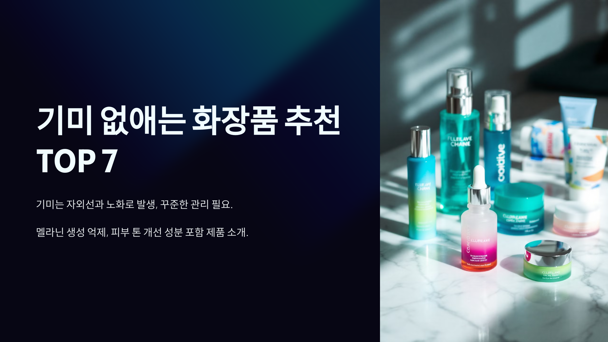 기미는 자외선 노출과 피부 노화로 인해 발생하며, 꾸준한 관리가 필요합니다. 이번 글에서는 현재 판매 중인 기미 개선에 효과적인 화장품 7가지를 소개합니다. 이 제품들은 멜라닌 생성을 억제하고 피부 톤을 밝게 해주는 성분들이 포함되어 있어 기미 완화에 도움이 됩니다.