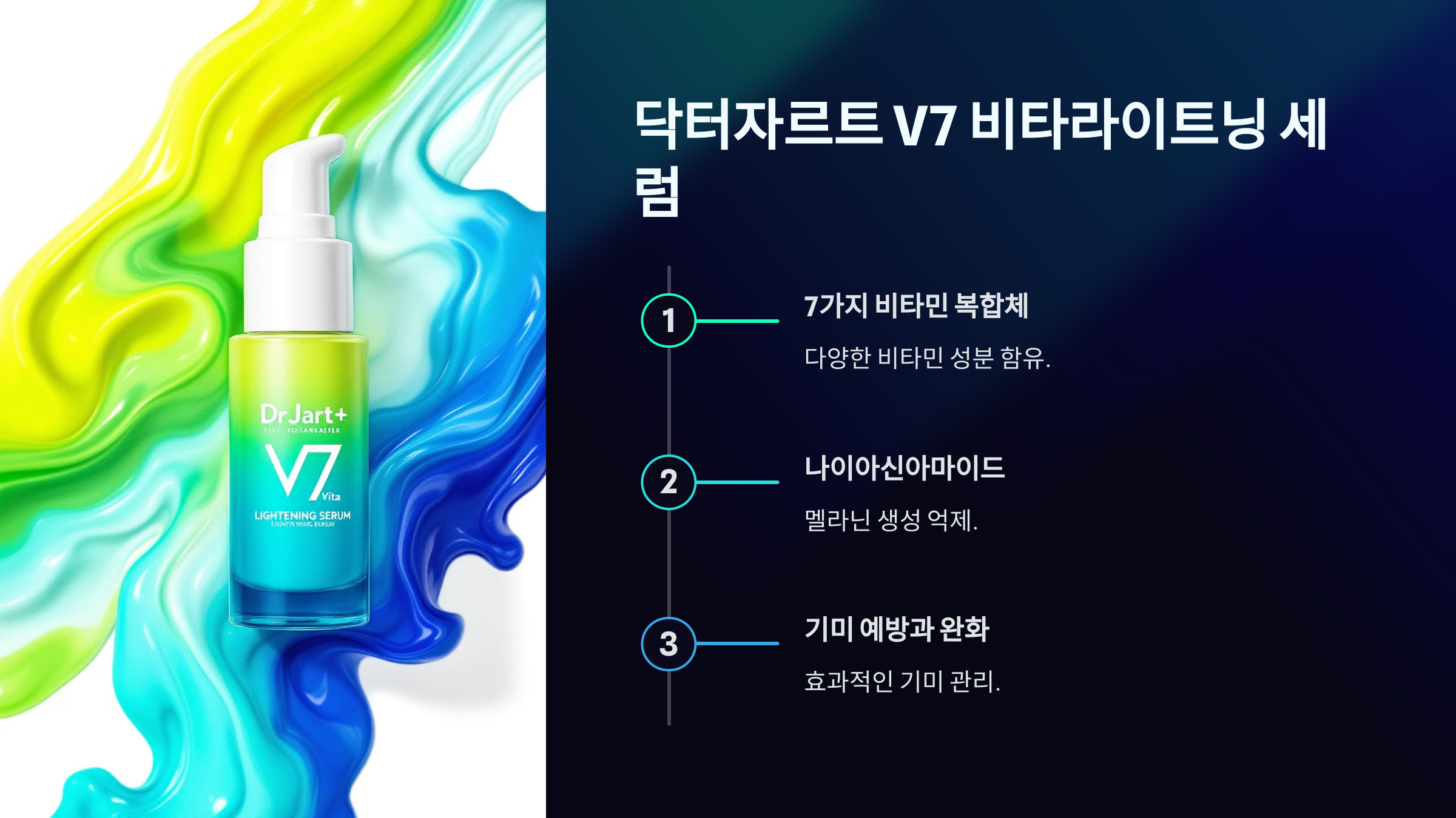 닥터자르트 세럼은 7가지 비타민 복합체가 포함되어 있으며, 나이아신아마이드 성분이 멜라닌 생성을 억제해 기미 예방과 완화에 효과적입니다.
