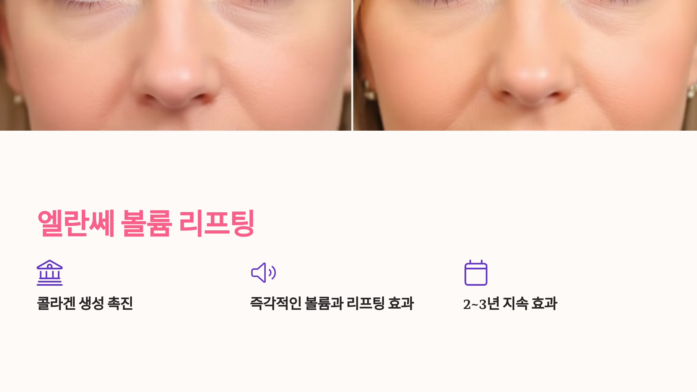 A3: 엘란쎄는 평균 2~3년간 효과가 지속됩니다. 콜라겐 생성을 촉진해 시간이 지날수록 자연스러운 탄력을 제공합니다.
