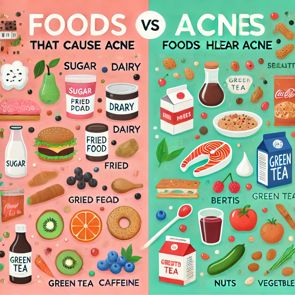 오늘은 여드름을 유발하는 음식과 완화하는 음식을 비교해서 알려드릴게요! 😊