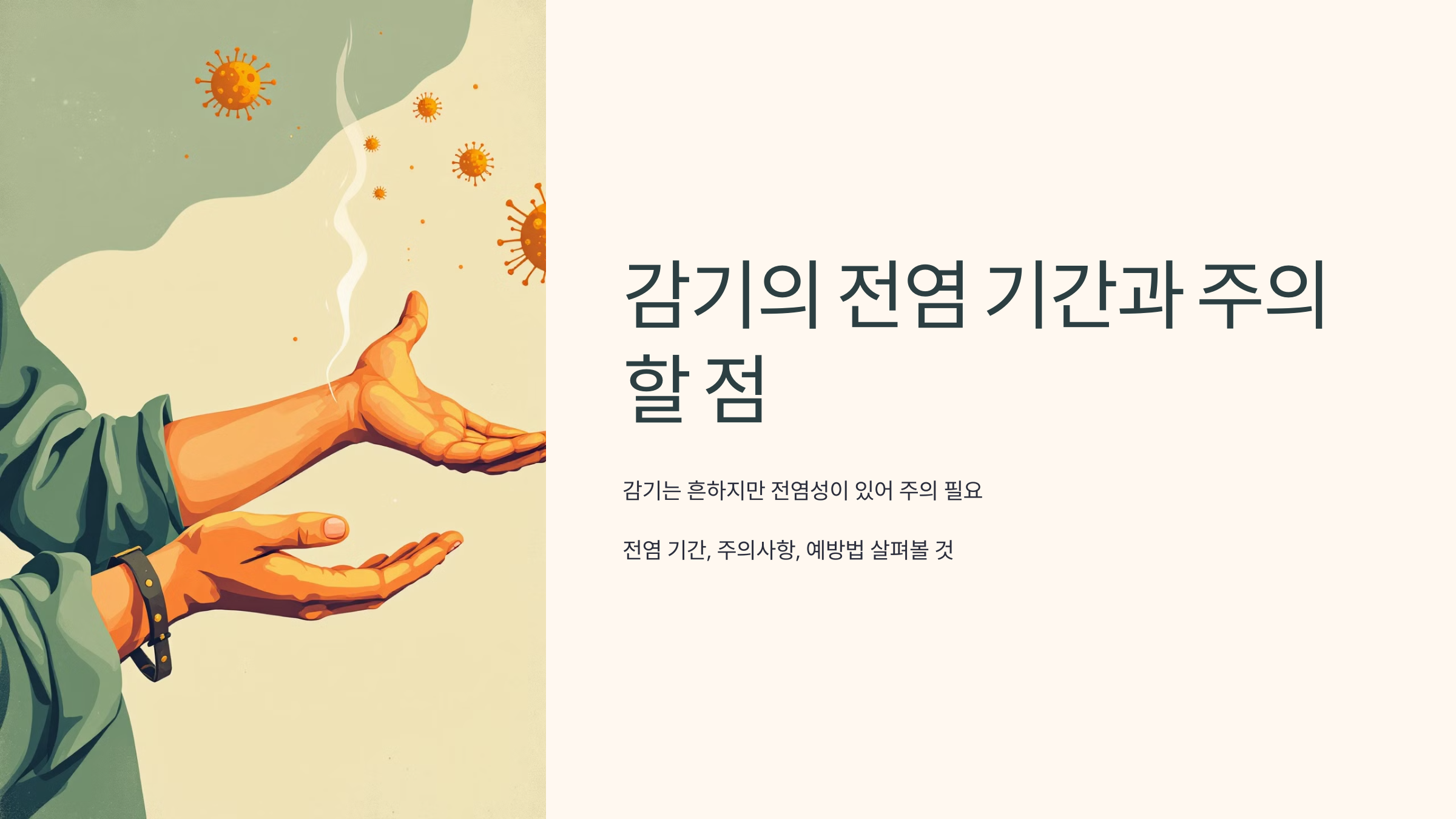 환절기와 겨울철에 많이 발생하는 감기는 누구나 한 번쯤 경험해 본 흔한 질병입니다. 하지만 감기에 걸리면 전염성 때문에 주변 사람들에게 옮길 수 있어 주의가 필요합니다. 이번 글에서는 감기의 전염 기간과 감기 걸렸을 때 유의할 점을 알아보며, 감기를 예방하고 관리하는 방법에 대해 살펴보겠습니다.