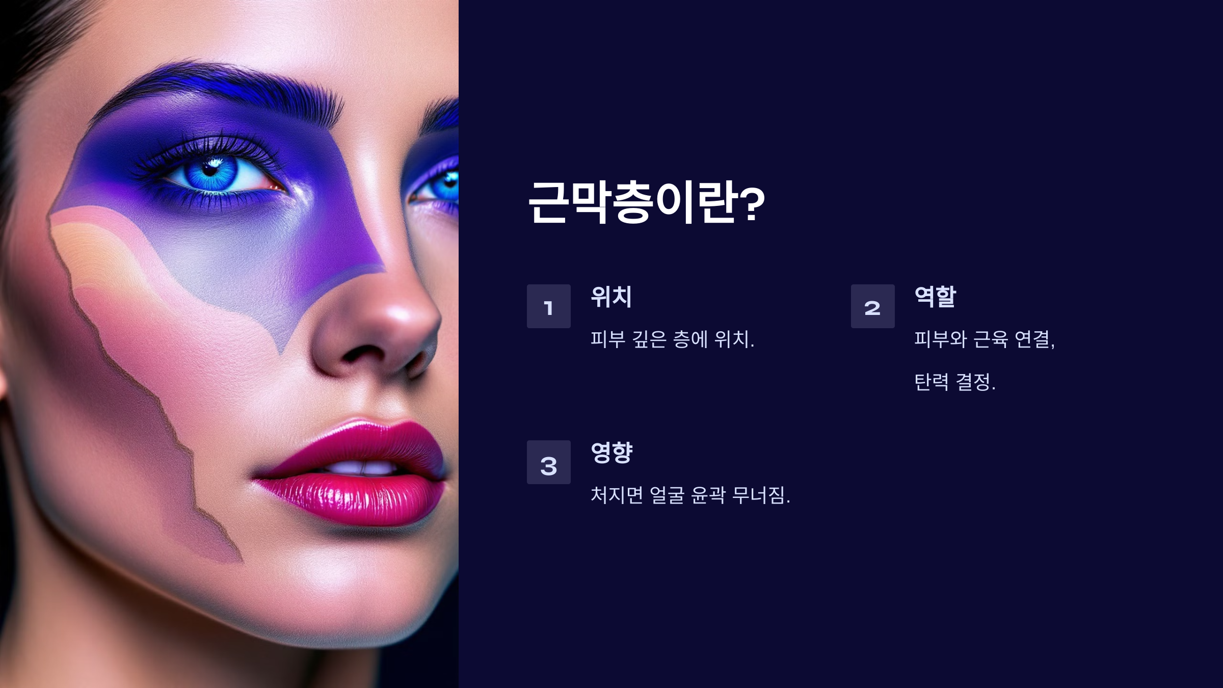 먼저 근막층이 무엇인지부터 알아볼 필요가 있죠. 근막층(SMAS층)은 피부의 깊은 층에 위치해 있고, 피부와 근육을 이어주는 역할을 합니다. 쉽게 말해 피부의 탄력과 처짐을 결정하는 주요 요소라고 할 수 있죠. 근막층이 탄탄하게 유지되면 얼굴 윤곽이 또렷해 보이지만, 처지기 시작하면 얼굴이 전체적으로 늘어져 보일 수 있습니다. 저도 나이가 들수록 팔자주름이 깊어지고 턱선이 무너지면서 피부 깊은 층부터 관리해줄 필요성을 느끼게 됐습니다.
