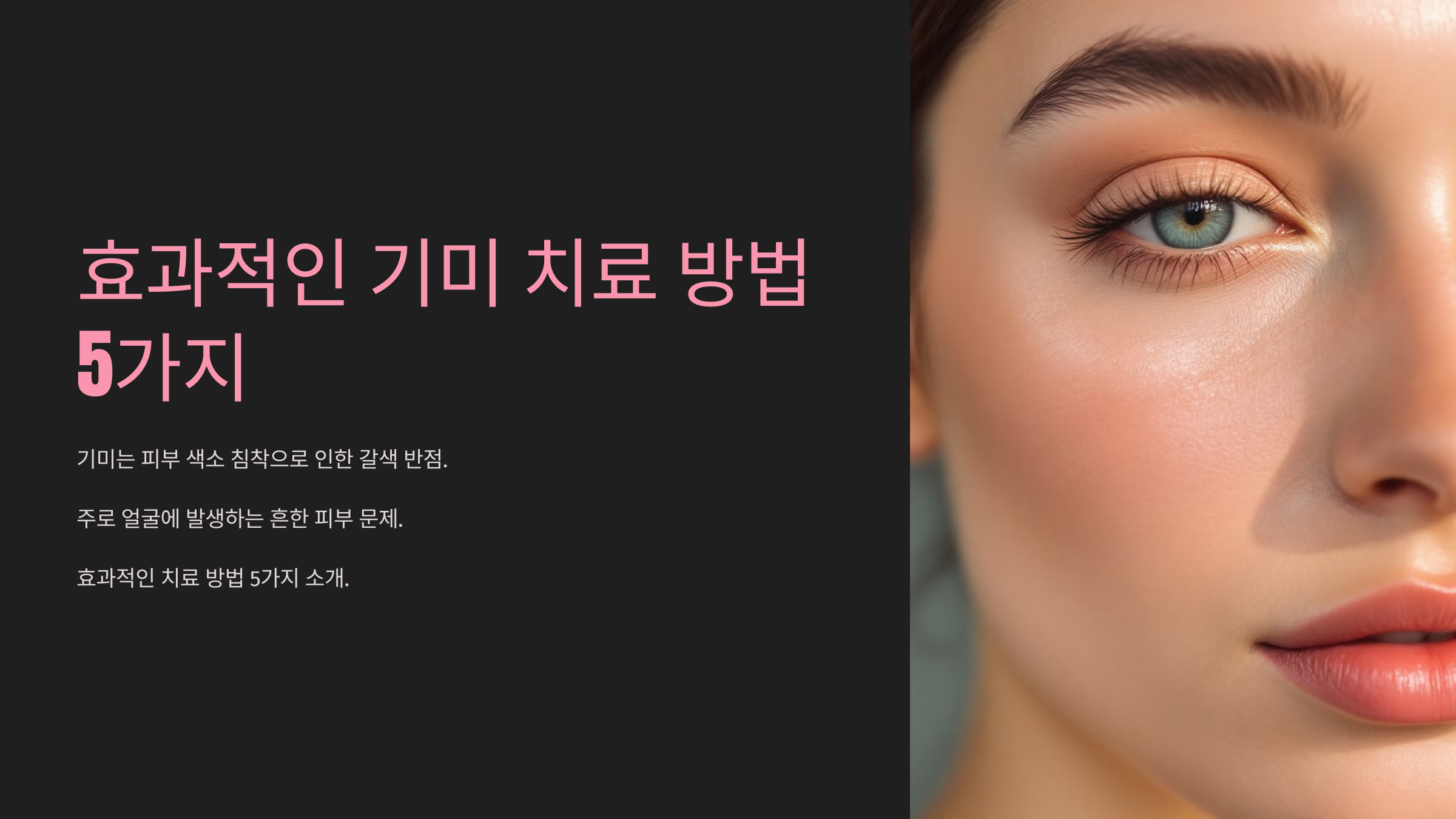 기미는 피부 색소 침착으로 인해 나타나는 갈색 반점으로, 주로 얼굴에 발생하는 피부 문제입니다. 햇빛 노출, 호르몬 변화, 유전적 요인 등이 기미를 유발할 수 있으며, 여성들에게 특히 흔하게 발생합니다. 기미는 심리적 스트레스를 유발할 수 있기 때문에 효과적인 치료 방법을 찾는 것이 중요합니다. 이번 글에서는 효과적인 기미 치료 방법 5가지를 소개해 드리겠습니다. 기미로 고민하는 분들에게 도움이 될 수 있는 다양한 방법을 알아보세요.