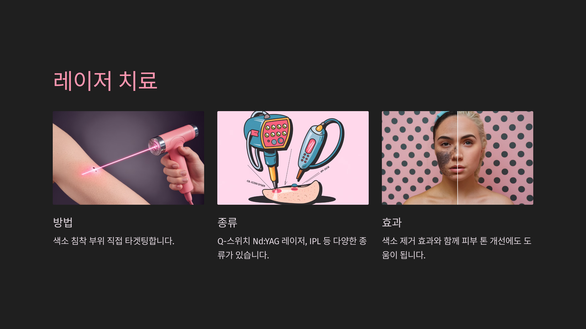 - 단점: 피부 타입에 따라 부작용이 있을 수 있으며, 지속적인 관리가 필요.