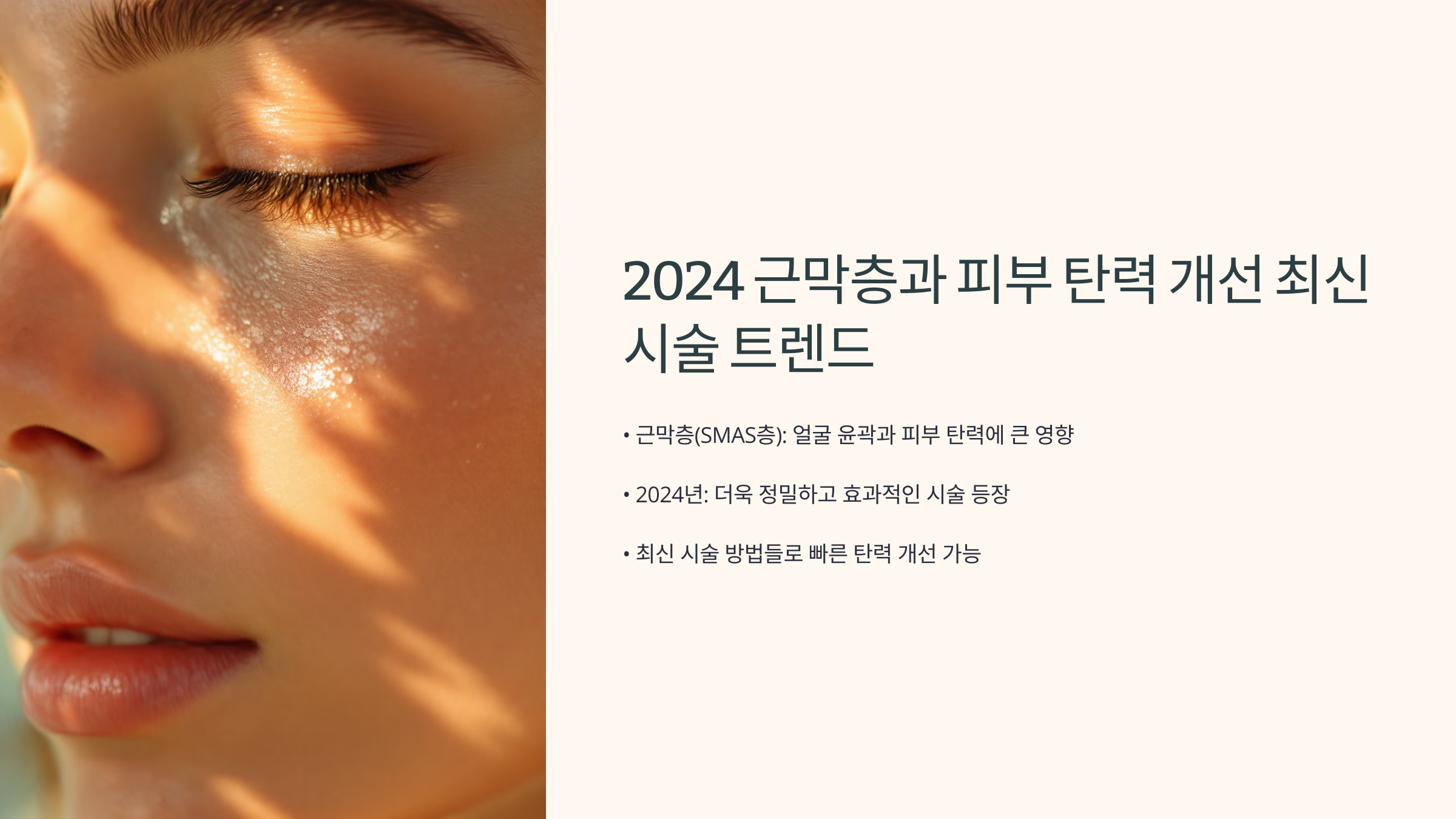 피부가 처지는 현상은 누구에게나 찾아오는 자연스러운 노화의 과정이지만, 이를 방치하지 않고 관리한다면 훨씬 더 오랜 시간 동안 탄탄한 피부를 유지할 수 있습니다. 특히 근막층(SMAS층)은 얼굴 윤곽과 피부 탄력에 큰 영향을 미치는 층이라, 요즘 가장 뜨거운 피부 시술 트렌드로 자리 잡고 있습니다. 저도 탄력을 유지하고 싶은 마음에 관련 정보를 찾아보다 보니, 2024년에는 더욱 정밀하고 효과적인 시술들이 등장했다는 걸 알게 되었습니다. 이번 글에서는 근막층과 피부 탄력을 빠르게 개선할 수 있는 최신 시술 방법들을 소개해 보겠습니다.